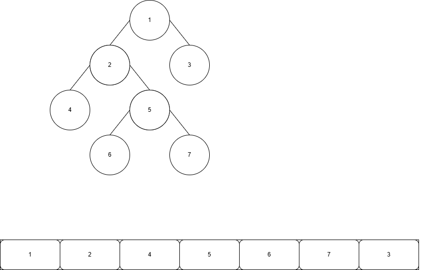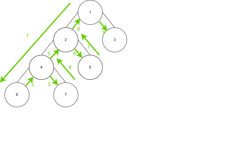 我们知道前序遍历会沿着左侧方向不断遍历直到为空,此时回到父节点,然后再进入右子树,向左不断遍历,如图所示。