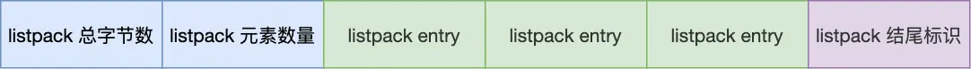 listpack 头包含两个属性,分别记录了 listpack 总字节数和元素数量,然后 listpack 末尾也有个结尾标识。图中的 listpack entry 就是 listpack 的节点了。