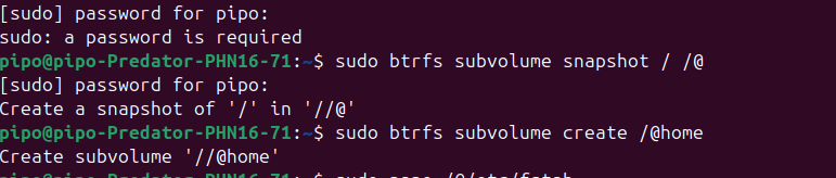 sudo btrfs subvolume create /@home